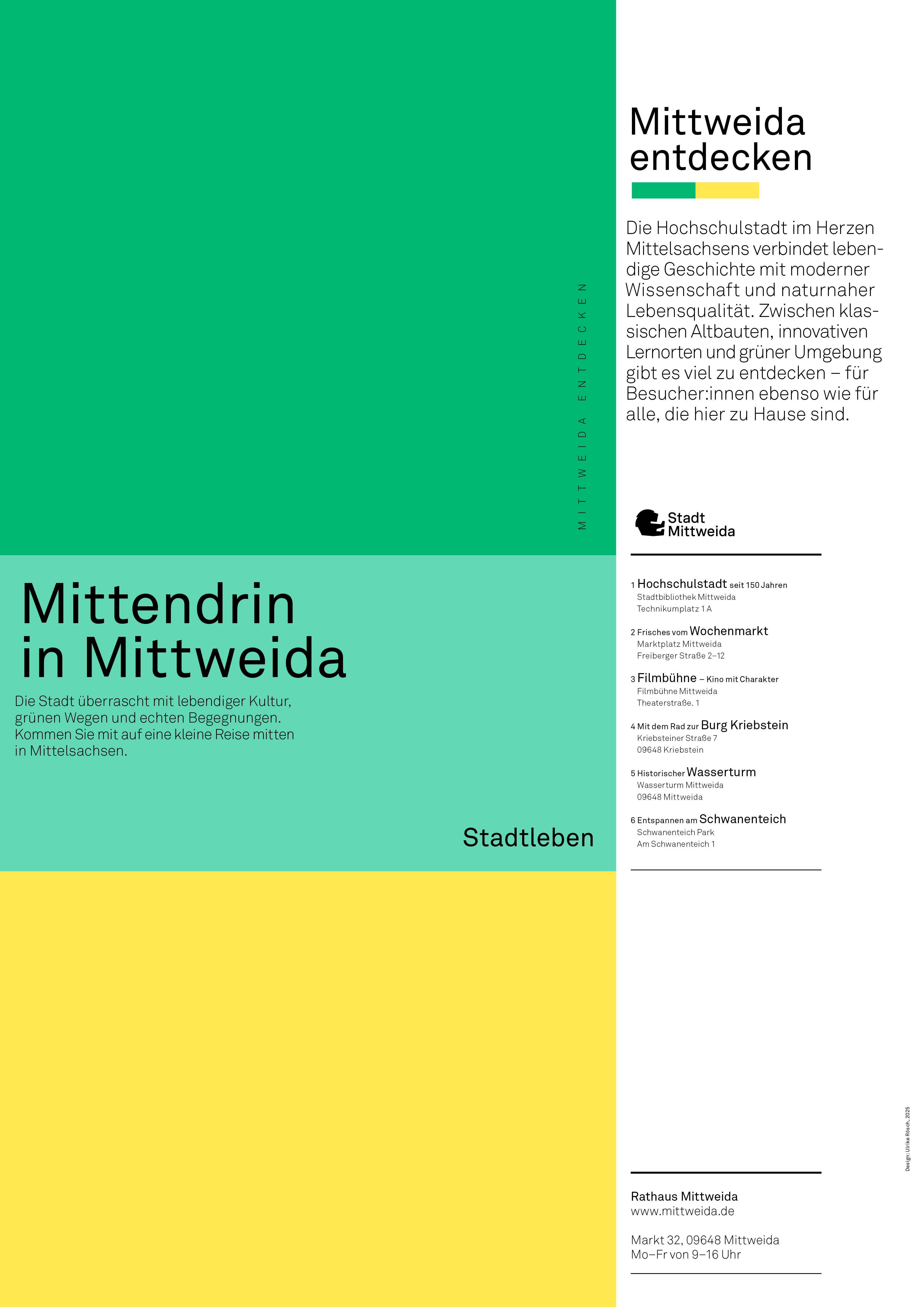 Es fehlt ein starkes Narrativ, eine Einladung, sich auf Mittweida einzulassen. Für Studierende. Für Einheimische. Für alle, die auf der Suche nach einem Ort mit Haltung sind. Ein Design, das aus der Umgebung kommt, das Sachsens Formensprache aufgreift, weiterdenkt und in die Zukunft führt. Offen, aktiv und selbstbewusst. Ein Stadtbild, das Haltung zeigt aber nicht laut werden muss.